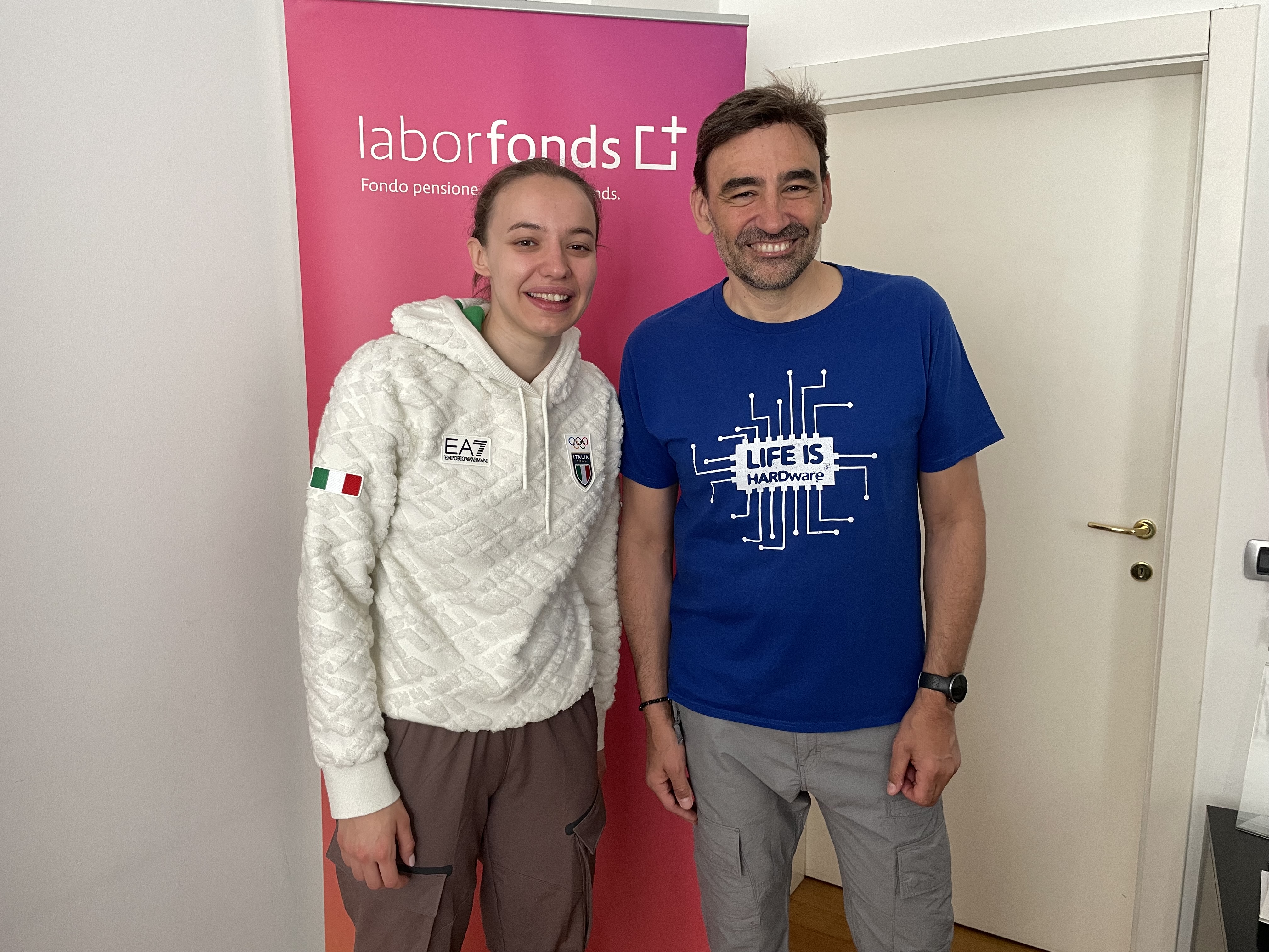 In vista della festa del 22 aprile prossimo a Bolzano per i 150mila aderenti, la campionessa di short track Chiara Betti ed il noto youtuber finanziario Paolo Coletti sono stati in visita negli uffici di Laborfonds.